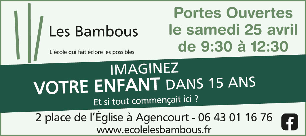 École “Les Bambous” – 2, place de l’Église à Agencourt – Tél. 06 43 01 16 76 – Facebook