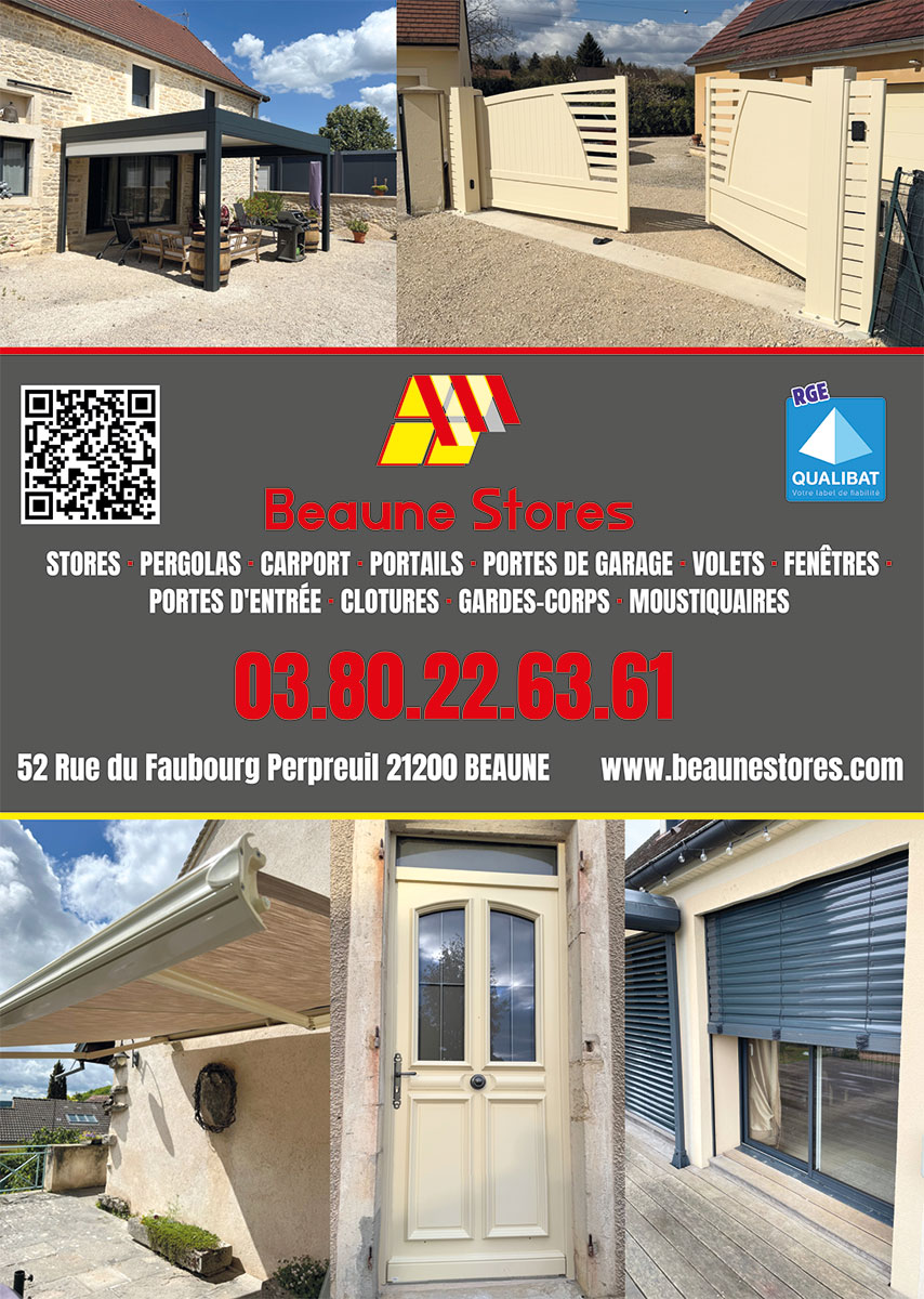 Sous la direction de Cyrille Panloup-Fornès, c’est en 2014 que ce dernier crée Beaune Stores spécialisée dans la vente, l’installation et l’entretien de divers équipements extérieurs tels que stores, bannes, portes, fenêtres, volets battants et roulants, portails, clôtures, portillons et portes de garage. Plus tard arriveront des voiles d’ombrage, pergolas, carports…