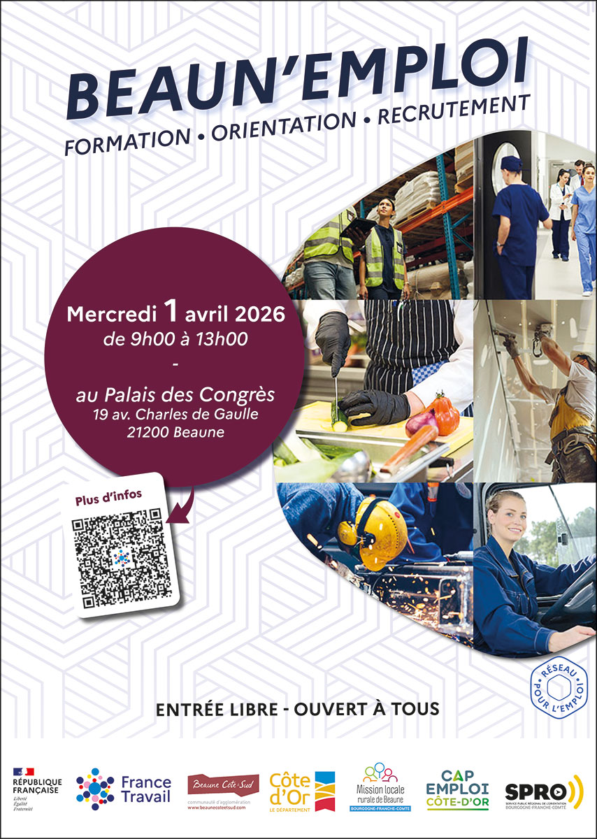Envie de trouver un emploi qui vous correspond, de changer de voie ou de découvrir de nouveaux horizons ? Rendez-vous le mercredi 1er avril au Palais des Congrès de Beaune. Entrée libre. Ouvert à tous.