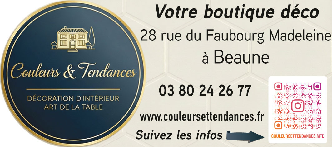 Couleurs et Tendances – 28, rue du Faubourg Madeleine à Beaune – Tél. 03 80 24 26 77 – www.couleursettendances.fr – Facebook et Instagram