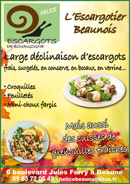 Hélice L’Escargotier Beaunois – 6, boulevard Jules-Ferry à Beaune – 09 83 72 05 49 – helicebeaune@bbox.fr