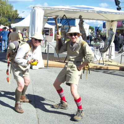 En échasse ou à dos d’éléphant, ils parcourent la foire et vous mènent bon train vers la bonne humeur.