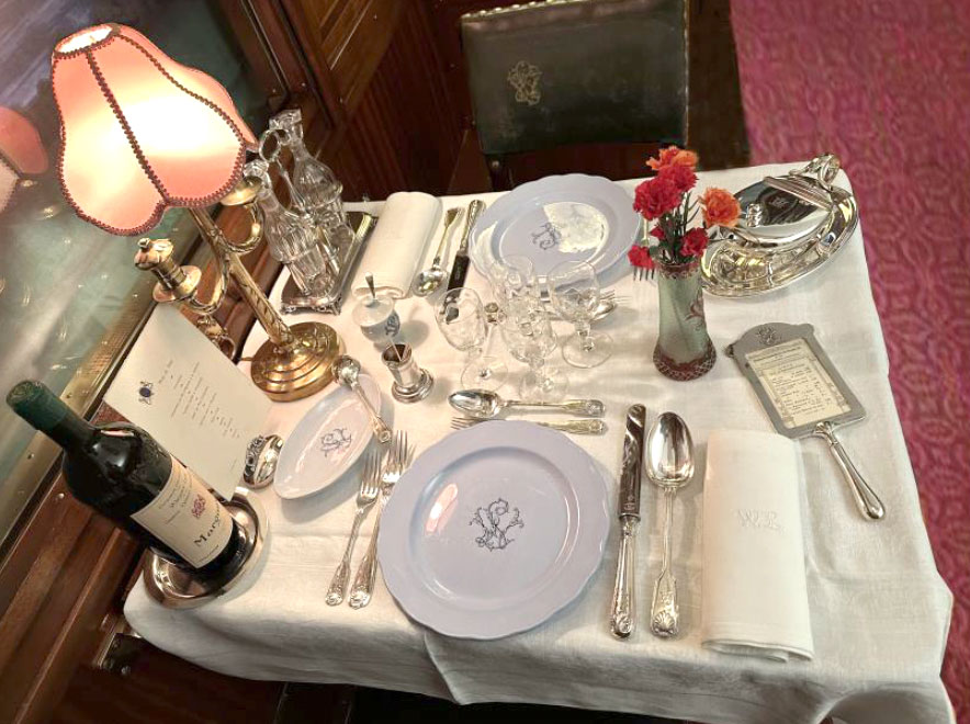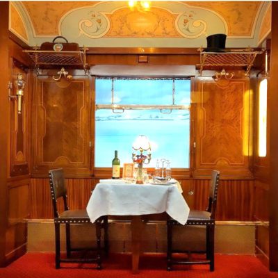• Premier décor (1895-1910) : le style Art Nouveau y règne en maître. Boiseries en teck, marqueteries délicates, plafonds peints à l’italienne et vaisselle siglée de la Compagnie des Wagons-Lits. Les menus raffinés et les services en argent Christofle rappellent que ces voitures étaient de véritables palaces roulants.