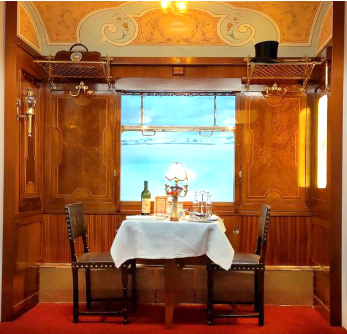 Vous découvrirez plusieurs décors d’époque, retraçant l’évolution esthétique du train au fil du temps :