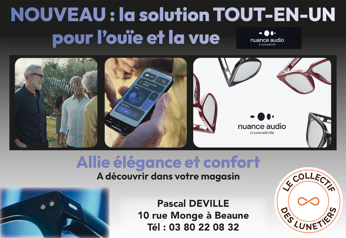 Le magasin beaunois “Le Collectif des Lunetiers” propose désormais une innovation unique : les lunettes “Nuance Audio”, qui offrent une solution deux-en-un, combinant correction visuelle et confort auditif discret, spécialement pensée pour les