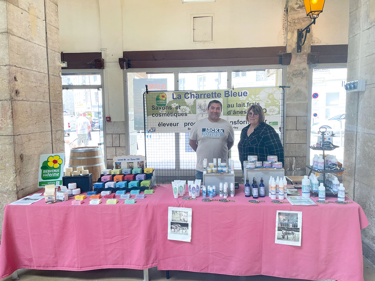 • La Charrette Bleue : savons et cosmétiques au lait frais d’ânesse