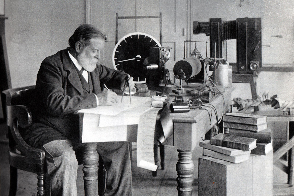 Il naît à Beaune le 5 mars 1830 et rejoint Paris en 1849 pour étudier la médecine qu’il n’exercera jamais malgré l’obtention de son diplôme. Il s’intéresse rapidement au cœur et plus globalement au mouvement du corps. Il y consacre de nombreuses expériences, développe un appareil pour mesurer les pulsations cardiaques, met au point un système pour retranscrire de manière synchrone les mouvements d’un cheval, ainsi que ceux d’insectes et d’oiseaux. Nommé professeur au Collège de France, il obtient la chaire d’Histoire naturelle des corps organisés en 1869. Dès 1873, il évoque, dans le cadre de l’étude théorique du vol des oiseaux, un appareil photographique capable de prendre plusieurs épreuves à quelques centièmes de seconde d’écart l’une de l’autre. En 1878, il devient membre de l’Académie des Sciences au fauteuil de Claude Bernard. Marey y présente la technique de chronophotographie le 3 juillet 1882. Focalisé sur le fonctionnement de la machine humaine, le scientifique, physiologiste et médecin, utilisera la photographie comme outil principal de ses recherches jusqu’à sa mort en 1904.