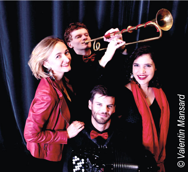Faisant la part belle au mariage des timbres et des couleurs et aux harmonies de leurs voix, Belinda Kunz et Milena Bischoff proposent un programme de duos, parmi les plus beaux du répertoire. Louis Bussière leur répond à la trompette, brillante et joyeuse, et Olivier Innocenti, à l’accordéon, apporte au programme sa couleur tantôt populaire, tantôt chaleureuse et recueillie. Vous êtes invités à vous joindre aux artistes pour un final convivial rappelant les douces veillées d‘autrefois.