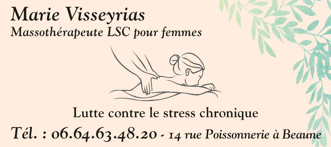 Marie Visseyrias – Massothérapeute LSC – 14, rue Poissonnerie à Beaune – Tél. 06 64 63 48 20 – Facebook et Instagram