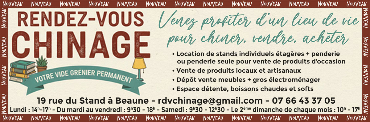 Rendez-vous chinage – 19, rue du Stand à Beaune – 07 66 43 37 05 – rdvchinage@gmail.com