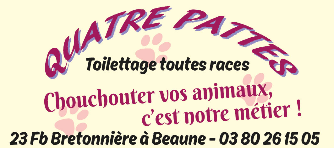 Quatre Pattes – 23, rue du Faubourg Bretonnière à Beaune – Tél. 03 80 26 15 05 ou 07 57 17 96 15.