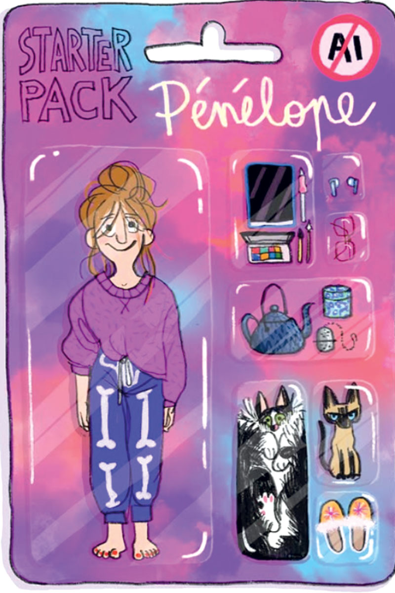 Né dans les années 2010 sur internet, utilisé pour exagérer ou moquer des stéréotypes sociaux, culturels ou professionnels, puis remis au goût du jour par l’essor de l’intelligence artificielle, le starter pack consiste à décrire une personne sous forme d’une figurine stylisée enfermée dans une boîte en plastique, avec ses objets fétiches, ses vêtements, ses passions ou encore ses habitudes les plus caractéristiques. Ces montages d’objets ou de symboles résument l’identité d’une personne, d’un métier ou d’un style de vie avec humour et légèreté.